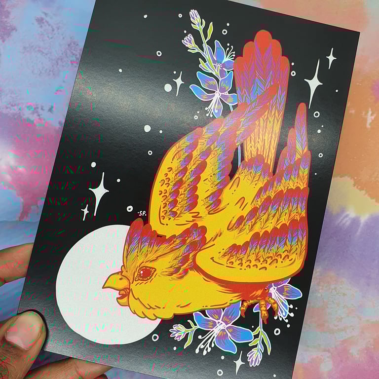 A6 mailable 300gsm postcard. Utilizing colours from the six stripe gay pride flag, this print featuring flora and fauna themed artwork is the perfect way to naturally and subtly include your pride colours in your space!